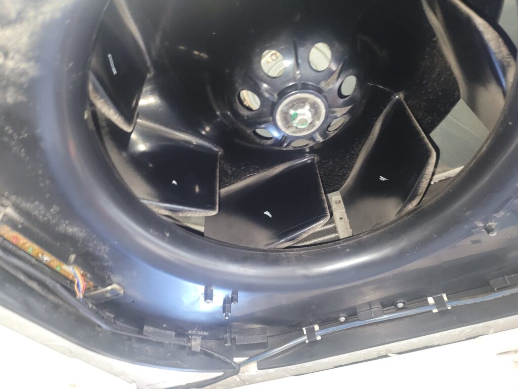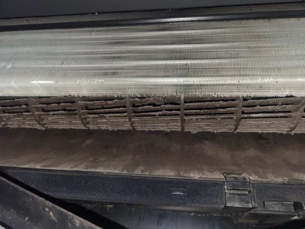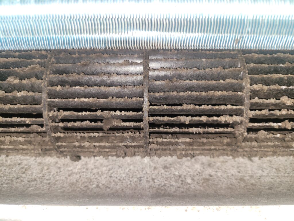 송풍팬과 열교환기 내부에 검은 곰팡이가 심하게 쌓여 있는 경우가 매우 많습니다.